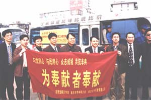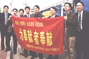 2003年4月26日,本公司與共青團南京市委、南京市青年聯(lián)合會組織部分青年代表帶著全市青年的心愿,向廣大奮斗在抗非典一線的醫(yī)務工作者送去錦旗和慰問品,表達對奉獻者真摯的祝福。在江蘇省人民醫(yī)院,當院領導和醫(yī)護人員從團市委書記許宏和圣和藥業(yè)董事長王勇手中接過錦旗和慰問品時深為感動。他們表示有全市人民的大力支持,一定能戰(zhàn)勝“非典”惡魔,奪取抗非典戰(zhàn)斗的勝利。許宏書記和王勇董事長對奮戰(zhàn)在抗非典一線的醫(yī)務人員所表現(xiàn)出的崇高精神表示欽佩,對他們所做的工作表示感謝,并囑咐他們一定要保重身體。