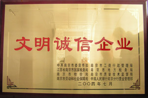 日前,我公司收到了由南京市市委宣傳部等八部門聯(lián)合授予的“文明誠信企業(yè)”獎牌。