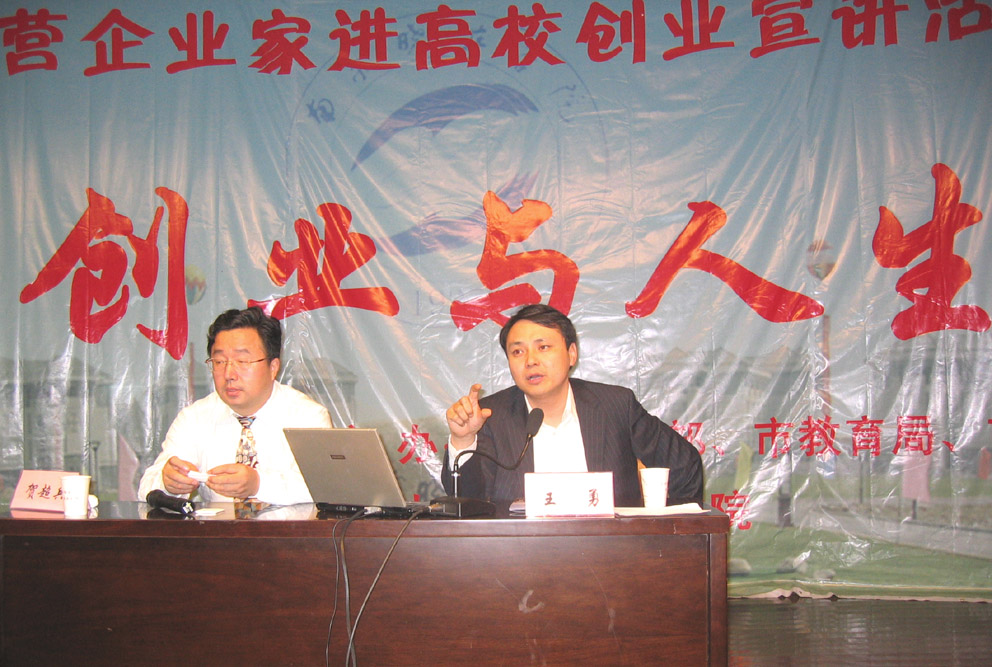 由市委統(tǒng)戰(zhàn)部、市教育局和市工商聯(lián)聯(lián)合主辦的民營企業(yè)家進(jìn)高校創(chuàng)業(yè)宣講活動,4月25日走進(jìn)曉莊學(xué)院方山校區(qū)。這次的主題為“創(chuàng)業(yè)與人生”,王勇董事長作為南京市工商聯(lián)合會的副會長、自主創(chuàng)業(yè)的先進(jìn)者應(yīng)邀作為此次活動的宣講人。