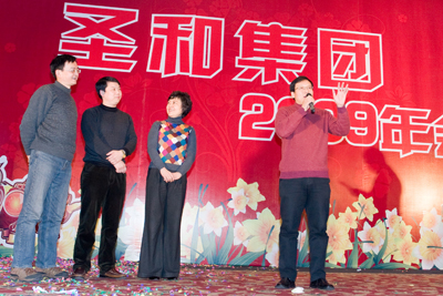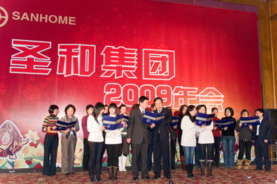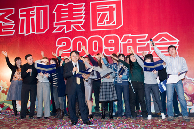 爆竹聲頻鬧庭軒,又逢春風(fēng)送舊年。轉(zhuǎn)眼,又到了揮手惜別舊年,滿懷喜悅迎接新年的時(shí)候了。元月16日晚,圣和集團(tuán)在寧員工、駐外辦事處經(jīng)理及各地代理商380余人歡聚一堂,在維景國(guó)際大酒店隆重舉行2009年迎春聯(lián)歡晚會(huì)。整個(gè)大廳座無(wú)虛席,華燈齊放、彩帶高懸,深紅的幕布為舞臺(tái)披上了節(jié)日的盛裝,大家歡聚一堂,共迎新春佳節(jié),晚會(huì)在歡快的樂(lè)曲聲中拉開帷幕。