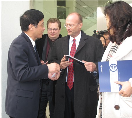 2009年12月1日下午,參加第五屆中歐工商峰會的部分代表一行十余人來我公司新港基地參觀考察,副總經(jīng)理戚良猛、張倉接待了來自中歐工商界的客人。