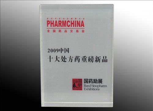 2009年11月25日,在成都世紀(jì)城嬌子國(guó)際會(huì)議中心舉辦的2009中國(guó)醫(yī)藥營(yíng)銷新銳論壇暨2009十大重磅新品評(píng)選發(fā)布會(huì)上,由我公司研制的新藥注射用左奧硝唑(優(yōu)諾安)榮獲2009年中國(guó)十大處方藥重磅新品稱號(hào)。