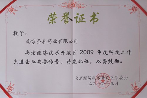 日前,南京經(jīng)濟(jì)技術(shù)開(kāi)發(fā)區(qū)管委會(huì)授予我公司“南京經(jīng)濟(jì)技術(shù)開(kāi)發(fā)區(qū)2009年度科技工作先進(jìn)企業(yè)”稱號(hào)。