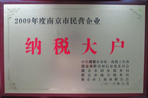 日前,由中共南京市委統(tǒng)戰(zhàn)部、南京市經(jīng)濟和信息化委員會、南京市人力資源和社會保障局、南京市國家稅務(wù)局、南京市地方稅務(wù)局、南京市工商業(yè)聯(lián)合會聯(lián)合評出了“2009年度南京市民營企業(yè)納稅大戶”,我公司在此次評比中光榮上榜。