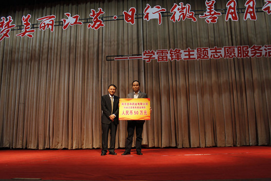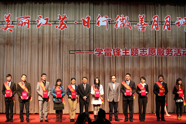 本網(wǎng)訊 3月4日,在毛主席“向雷鋒同志學(xué)習(xí)”題詞50周年紀(jì)念日和中國(guó)青年志愿者服務(wù)日到來(lái)之際,團(tuán)省委、省志愿者協(xié)會(huì)在南京航空航天大學(xué)將軍路校區(qū)藝術(shù)中心劇場(chǎng)舉行了“夢(mèng)美麗江蘇·日行微善月月評(píng)”學(xué)雷鋒主題志愿服務(wù)活動(dòng)暨江蘇省十佳青年志愿者、十佳青年志愿服務(wù)項(xiàng)目頒獎(jiǎng)典禮,王勇董事長(zhǎng)出席了此次活動(dòng)。