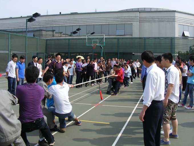 4月28日下午,位于制藥廠內(nèi)的籃球場上人聲鼎沸、熱鬧非凡,參加拔河比賽參賽隊員、啦啦隊員及工作人員早早來到了場地。15點整,隨著裁判的哨聲一響,參賽隊員都全身心地投入到比賽中去。隊員們緊緊抓牢手中的繩子,降低重心,齊心協(xié)力,卯足了勁往后拉。每名隊員都是竭盡全力,摔倒了,再爬起來,手磨破了,咬咬牙繼續(xù)堅持著。“加油!加油!”場邊拉拉隊員們的加油聲、歡呼聲響徹整個籃球場的上空,此起彼伏,現(xiàn)場氣氛十分熱烈。