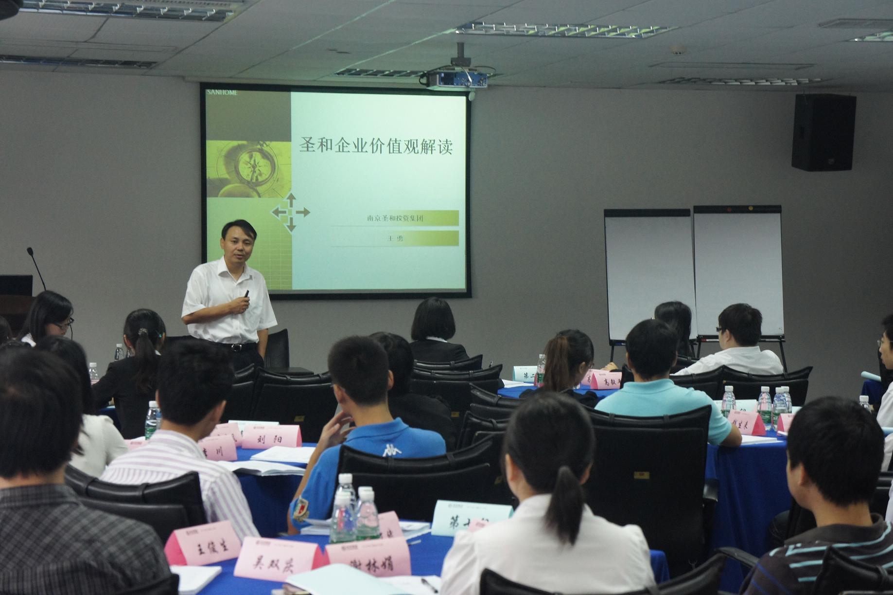 培訓(xùn)課上,王勇董事長首先跟學(xué)員詳細解讀了圣和的企業(yè)文化,并與學(xué)員互動交流,氣氛十分熱烈。隨后,與大家一同分享了一段發(fā)人深省的視頻和故事,殷切希望新員工在今后的工作生活中,秉承圣和核心價值觀,做到誠信正直、積極主動、擁抱變化,擔(dān)負起“讓更多人享受健康的快樂”這一使命,在追求卓越的道路上與圣和攜手前行,共同發(fā)展進步。王勇董事長精彩的授課與分享,讓所有學(xué)員內(nèi)心都深受啟發(fā)與鼓舞,對未來的工作和生活都充滿了激情和信心,更以能加入圣和大家庭為榮,愿為“打造百年圣和,成就卓越常青藤企業(yè)”這一圣和戰(zhàn)略目標而奮斗。