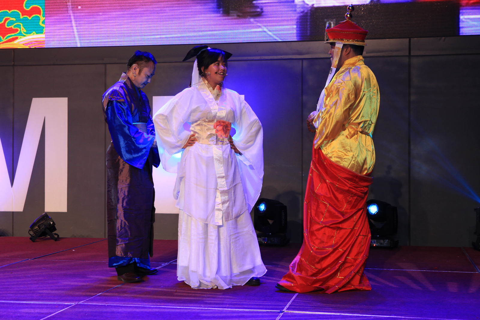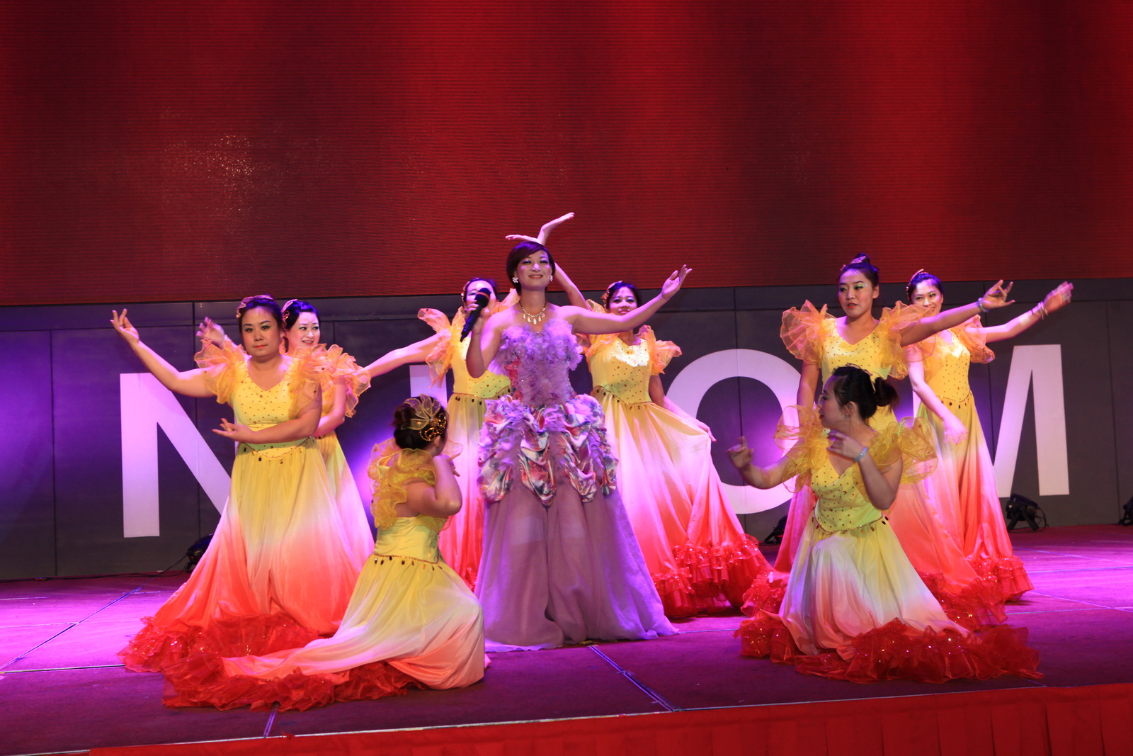 舞蹈《好運來》拉開了演出的序幕,視頻短片《光耀未來》寓意著,“榮光耀,千里之行始今朝,展未來,萬里揚帆再啟航”。由吉遼大區(qū)孫瑤等帶來的歌伴舞《相信》和來自南京德云社的兩位著名相聲演員,給大家?guī)砹瞬灰粯拥穆犛X享受。江蘇大區(qū)的童沅等帶來的舞蹈串燒,展示了圣和員工的活力和朝氣。研發(fā)中心的視頻互動《爸爸去哪兒了》,喚起了大家無限的親情感受。江蘇省歌舞團演員奉上的民歌《越來越好》和《在希望的田野上》,增添了紅紅火火的氣氛。黑龍江大區(qū)的張巍巍、郭強兩人合作的小品《吃面》,給大家?guī)砹瞬簧贅纷。制劑分廠三車間任詠秋的歌伴舞《望鄉(xiāng)》,唱出了無盡的鄉(xiāng)情。奇妙的《水晶芭蕾》,給大家?guī)砹瞬灰粯拥挠^賞視覺。云貴大區(qū)的小品《新白蛇傳》中插播的廣告詞,讓圣和人記憶猶新。研發(fā)中心何承華帶來了歌曲《女人花》,盡顯柔情感染了全場。供應鏈徐明秀、滿金萍帶來快板表演《供應鏈之聲》,道出了供應鏈的心聲。京劇樣板戲串燒、制劑分廠一車間崔紅俊的獨唱《紛飛》,讓大家一飽耳福。上海大區(qū)譚秋艷等的現(xiàn)代舞《思韻》,毫不遜色專業(yè)型的舞蹈演員,輕盈的舞姿散發(fā)著時代的氣息。置業(yè)公司的小合唱《真心英雄》,掀起了本場晚會的高潮,王勇董事長也被邀登臺同唱。北京大區(qū)的舞蹈《好日子》落下了整場晚會的帷幕,寓意著新的一年我們迎來2014,讓我們盛情邀約好日子的到來。