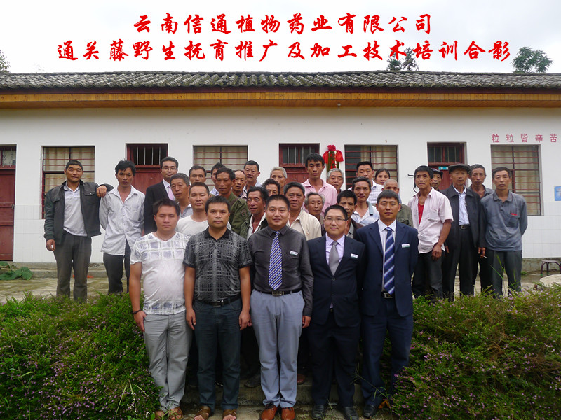 本網(wǎng)訊 8月25日,云南信通植物藥業(yè)有限公司生產(chǎn)技術(shù)部應(yīng)斗咀通關(guān)藤野生撫育基地負(fù)責(zé)人及當(dāng)?shù)剞r(nóng)戶邀請,組織人員至云南文山州馬關(guān)縣進(jìn)行了通關(guān)藤野生撫育推廣及加工技術(shù)培訓(xùn)。培訓(xùn)會(huì)議得到了當(dāng)?shù)卣块T和農(nóng)戶的積極配合和大力支持,馬關(guān)縣科協(xié)主席及秘書,坡腳鎮(zhèn)書記,興隆村支書、村長,各村小組組長、農(nóng)戶等近40人參加了培訓(xùn)。