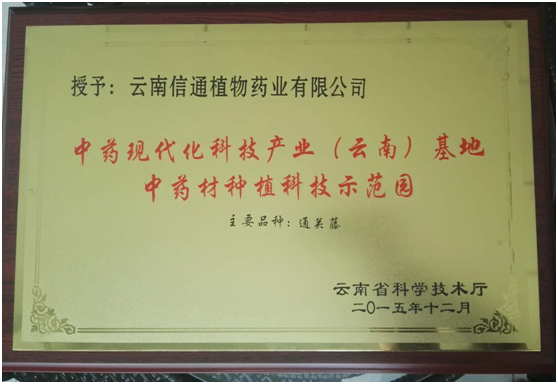 本網(wǎng)訊 3月16日,經(jīng)過圣和人歷經(jīng)數(shù)載的潛心研究和堅持不懈的努力,在無人涉及的通關(guān)藤研究和種植領(lǐng)域中不斷探索,終于取得了優(yōu)異的成績,其成果得到了云南省科技廳的認可,被云南省科學技術(shù)廳授予為“中藥現(xiàn)代化科技產(chǎn)業(yè)(云南)基地中藥材種植科技示范園”,近期在云南信通植物藥業(yè)有限公司正式掛牌。